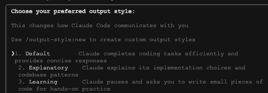 を入力すると以下のような選択肢が出てくるので選ぶことで切り替えられます。/output-style